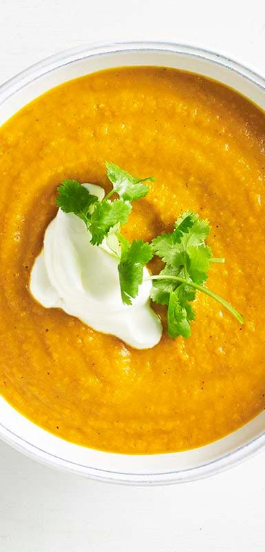 Level up a simple veggie puree or broth-based soup by adding a source of protein such as canned beans, shredded BBQ chicken, or sliced, cooked turkey sausage.