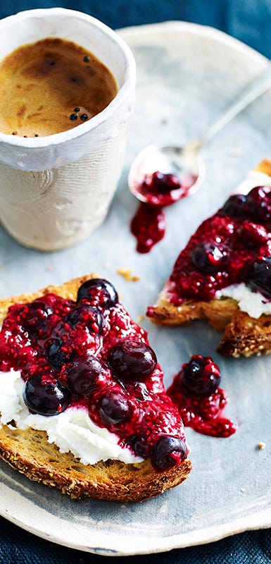 Tip: Include purple cabbage and Spanish onions in a bright coleslaw, and chargrill eggplant or roast beetroot for nutritious side dishes. In summer, snack on fresh blueberries, and during autumn and winter, add the frozen variety to porridge.