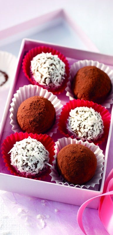 "À la maison, Pâques est synonyme de chocolat. Mais pas toujours sous forme d'œufs… Avec cette recette, on prépare soi-même des pralines enveloppées d'une fine robe de cacao ou de noix de coco. Délicieux ! C'est une chouette activité, facile à faire en famille pendant les vacances de Pâques."
