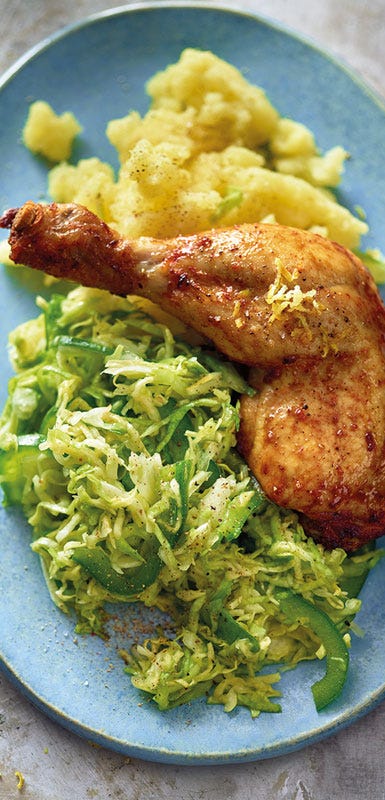 - Dann ein stärkehaltiges Lebensmittel (z. B. Kartoffeln, Getreideprodukt oder Hülsenfrüchte). Auch hier kannst du recht generös sein.