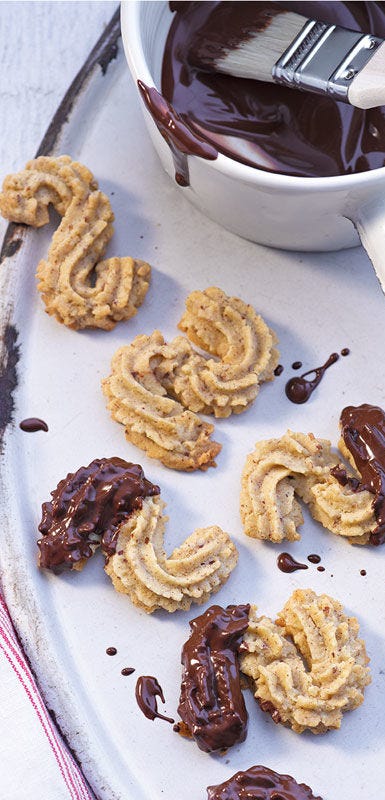 Jeder hat wahrscheinlich schon die Erfahrung gemacht: Nur eine Minute zu lange gebacken, und das feine Gebäck hat unbemerkt den schmalen Grat überschritten: von „perfekt“ zu „gerade noch essbar“. Deshalb ist es wichtig, schon beim Ausrollen des Teiges darauf zu achten, dass er an allen Stellen möglichst gleich dick ist. Nur so können später auch alle Guetzli auf dem Backblech zur gleichen Zeit fertig werden. Ausserdem sollten die verwendeten Ausstechformen in der Grösse nicht zu stark variieren, denn kleinere Guetzli sind schneller durch.
