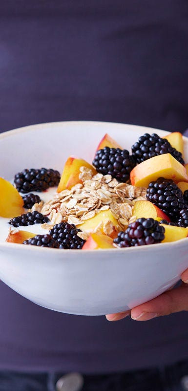 - Frühstück: Nektarinen-Brombeer-Müesli