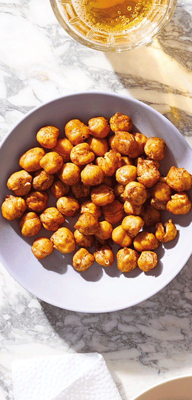 - Roasted chickpeas: Roasted chickpeas make a crunchy snack that can be enjoyed any time of the day. You can roast your own using your favourite herb and spice blend, or buy them pre-roasted. Not only are roasted chickpeas highly nutritious, but they can also be used instead of traditional croutons in soups and salads.