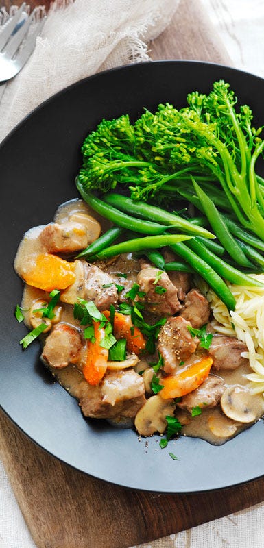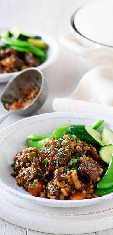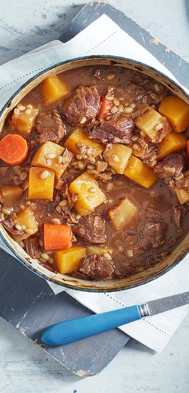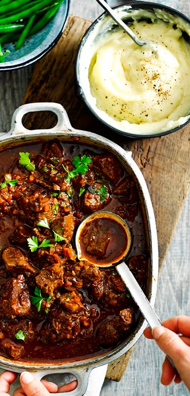 • Be patient. Don’t rush the initial browning stage, best done in small batches over medium-high heat. This will make your casserole richer in both colour and flavour.