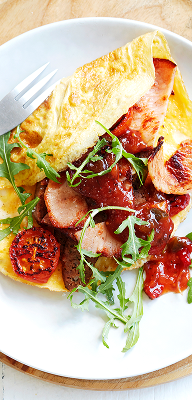Once you have a basic omelette down pat, experiment with different ingredients and flavours by adding seasonal vegetables, meats, or a variety of cheeses (think fetta, haloumi or cheddar).