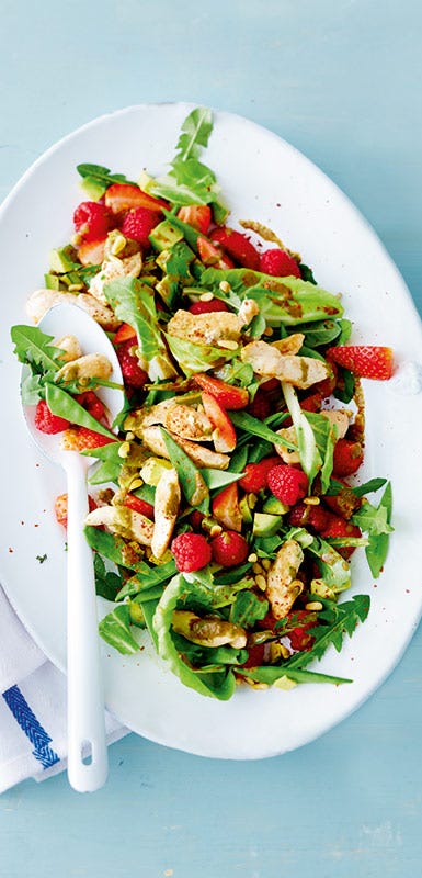 - Skiva ner jordgubbar i salladen. Särskilt gott ihop med feta- eller chèvreost. Toppa gärna med valnötter!